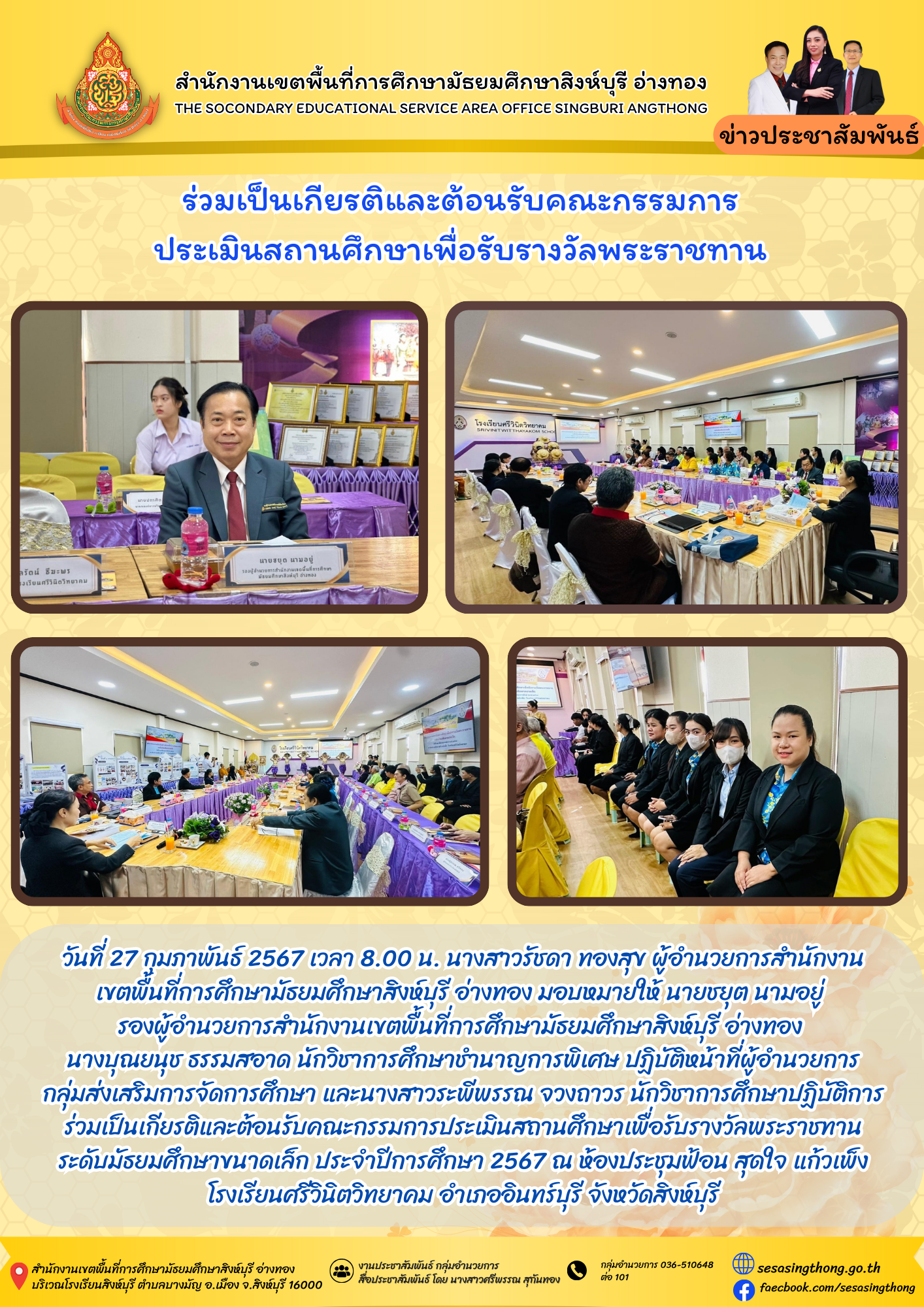 ร่วมเป็นเกียรติและต้อนรับคณะกรรมการ ประเมินสถานศึกษาเพื่อรับรางวัลพระราชทาน