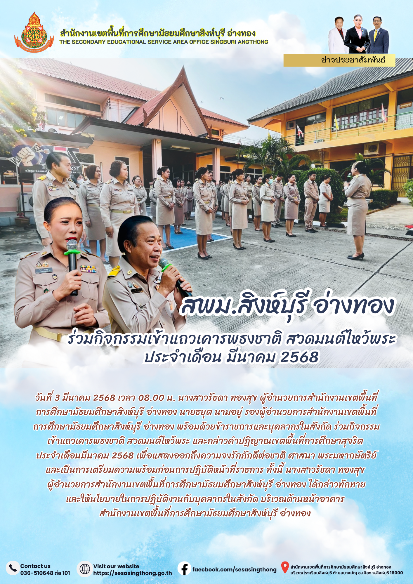 ร่วมกิจกรรมเข้าแถวเคารพธงชาติ สวดมนต์ไหว้พระ ประจำเดือน มีนาคม 2568