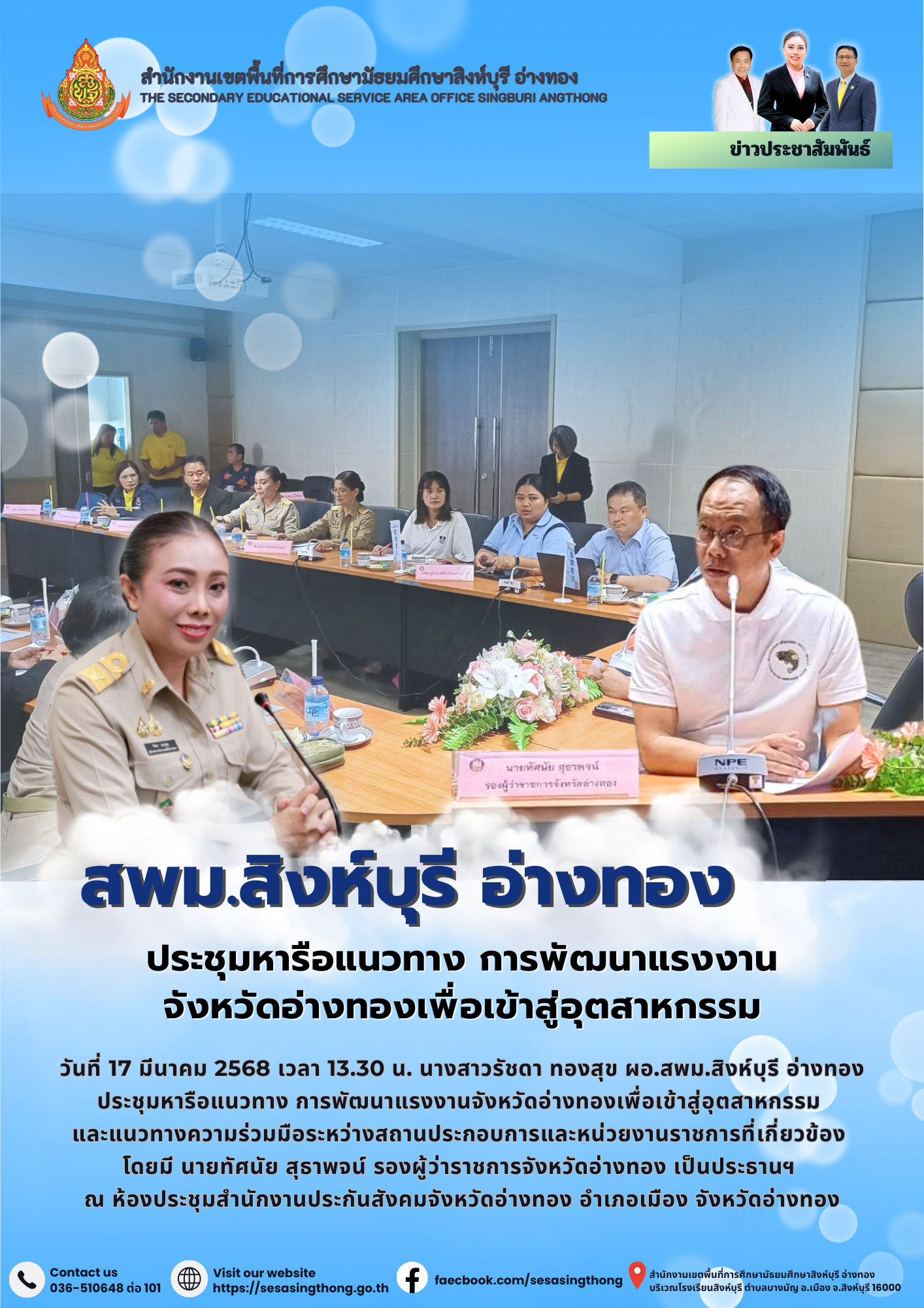 ประชุมหารือแนวทาง การพัฒนาแรงงานจังหวัดอ่างทองเพื่อเข้าสู่อุตสาหกรรม
