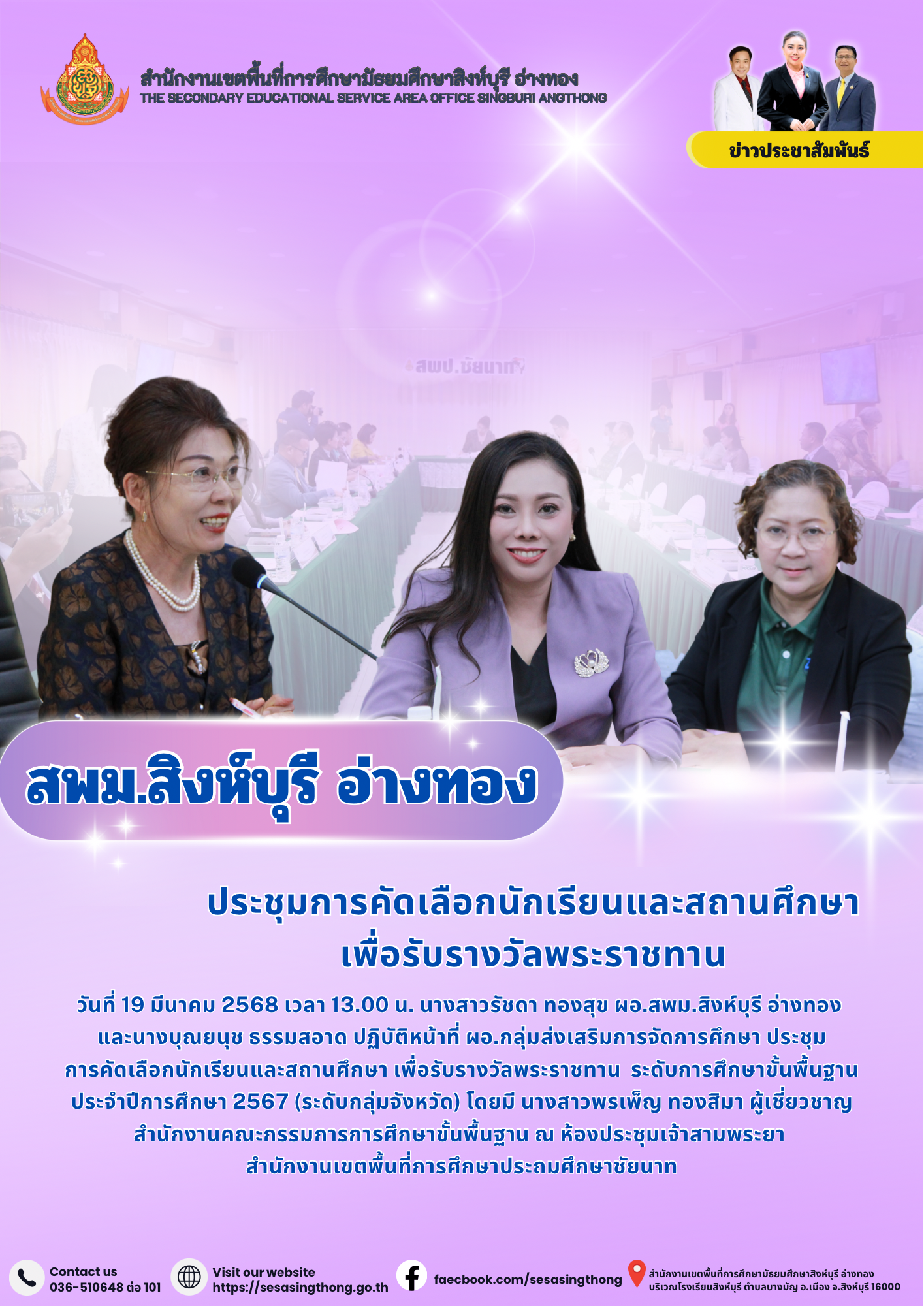 ประชุมการคัดเลือกนักเรียนและสถานศึกษา เพื่อรับรางวัลพระราชทาน