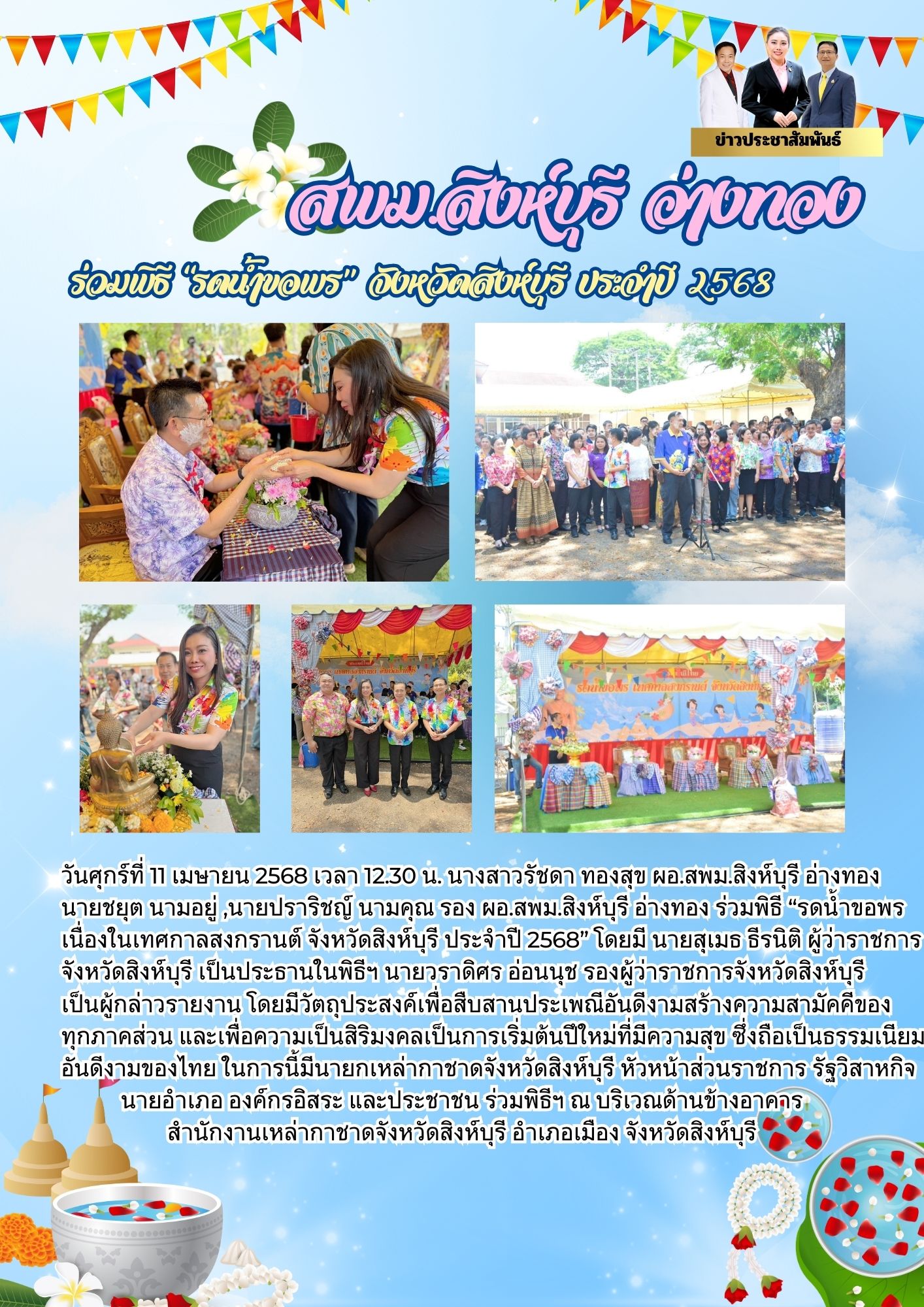 ร่วมพิธี “รดน้ำขอพร” จังหวัดสิงห์บุรี ประจำปี 2568