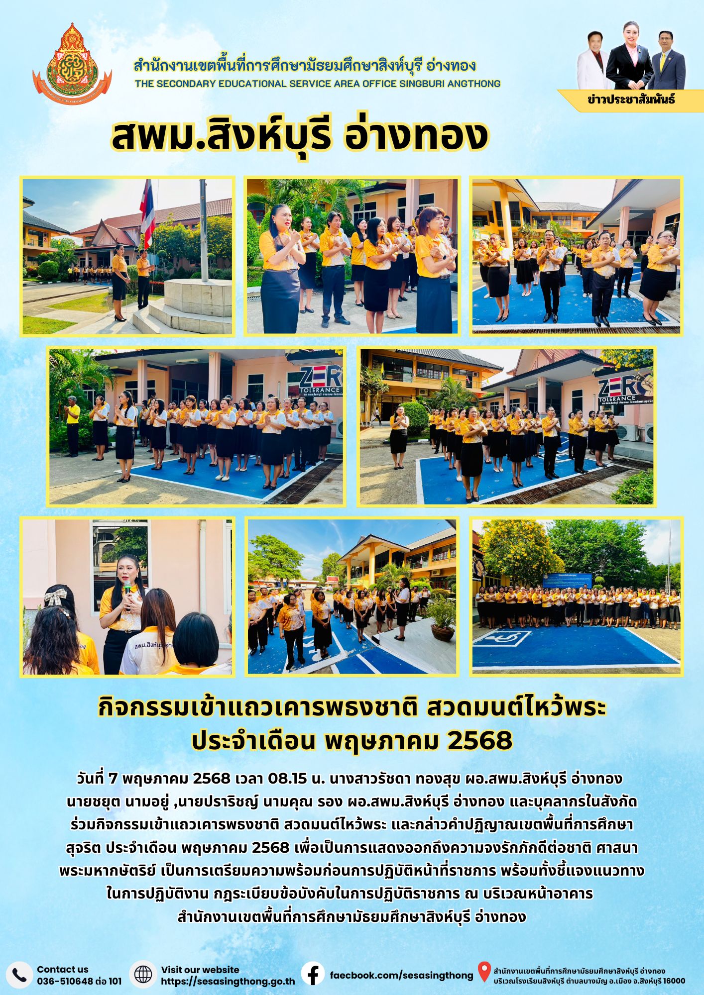 กิจกรรมเข้าแถวเคารพธงชาติ สวดมนต์ไหว้พระ ประจำเดือน พฤษภาคม 2568