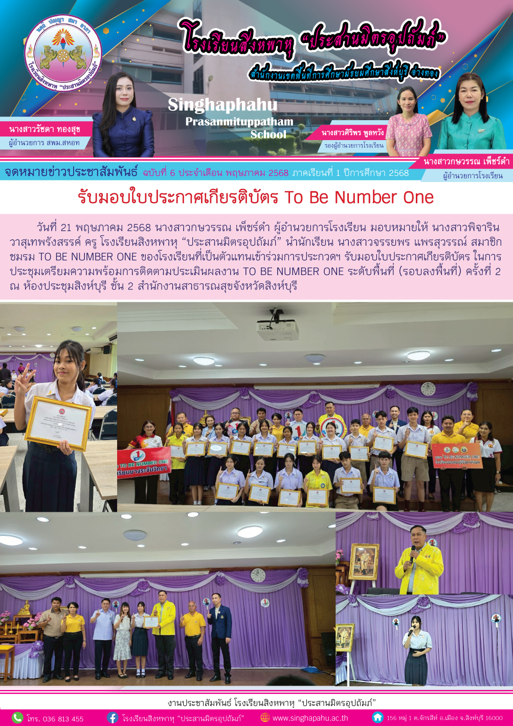 รับมอบใบประกาศเกียรติบัตร To Be Number One