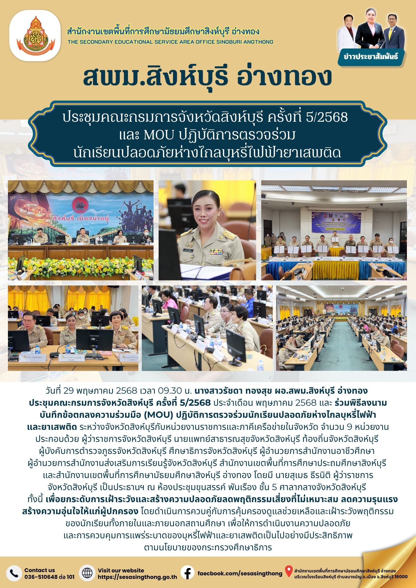 ประชุมคณะกรมการจังหวัดสิงห์บุรี ครั้งที่ 5/2568 และ MOU ปฏิบัติการตรวจร่วม นักเรียนปลอดภัยห่างไกลบุหรี่ไฟฟ้ายาเสพติด