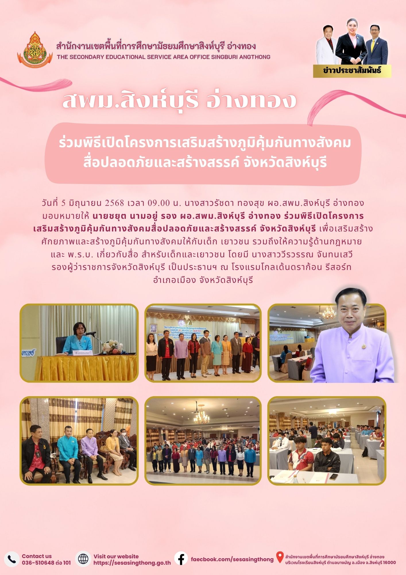 ร่วมพิธีเปิดโครงการเสริมสร้างภูมิคุ้มกันทางสังคมสื่อปลอดภัยและสร้างสรรค์ จังหวัดสิงห์บุรี
