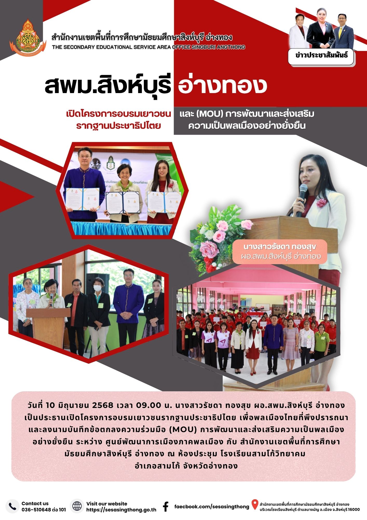 เปิดโครงการอบรมเยาวชนรากฐานประชาธิปไตย และ MOU การพัฒนาและส่งเสริม ความเป็นพลเมืองอย่างยั่งยืน