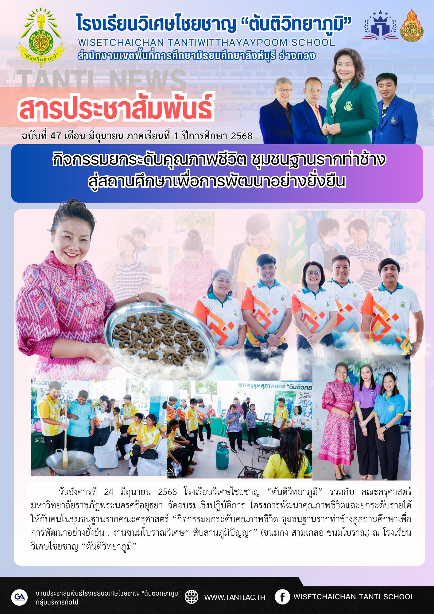 ว.ศ. อบรมการทำขนมกง สามเกลอ ขนมโบราณ วันอังคารที่ 24 มิถุนายน 2568 โรงเรียนวิเศษไชยชาญ “ตันติวิทยาภูมิ” ร่วมกับ คณะครุศาสตร์ มหาวิทยาลัยราชภัฏพระนครศรีอยุธยา จัดอบรมเชิงปฏิบัติการ โครงการพัฒนาคุณภาพชีวิตและยกระดับรายได้ให้กับคนในชุมชนฐานรากคณะครุศาสตร์ “กิจกรรมยกระดับคุณภาพชีวิต ชุมชนฐานรากท่าช้างสู่สถานศึกษาเพื่อการพัฒนาอย่างยั่งยืน : งานขนมโบราณวิเศษฯ สืบสานภูมิปัญญา” (ขนมกง สามเกลอ ขนมโบราณ) ณ โรงเรียนวิเศษไชยชาญ “ตันติวิทยาภูมิ”