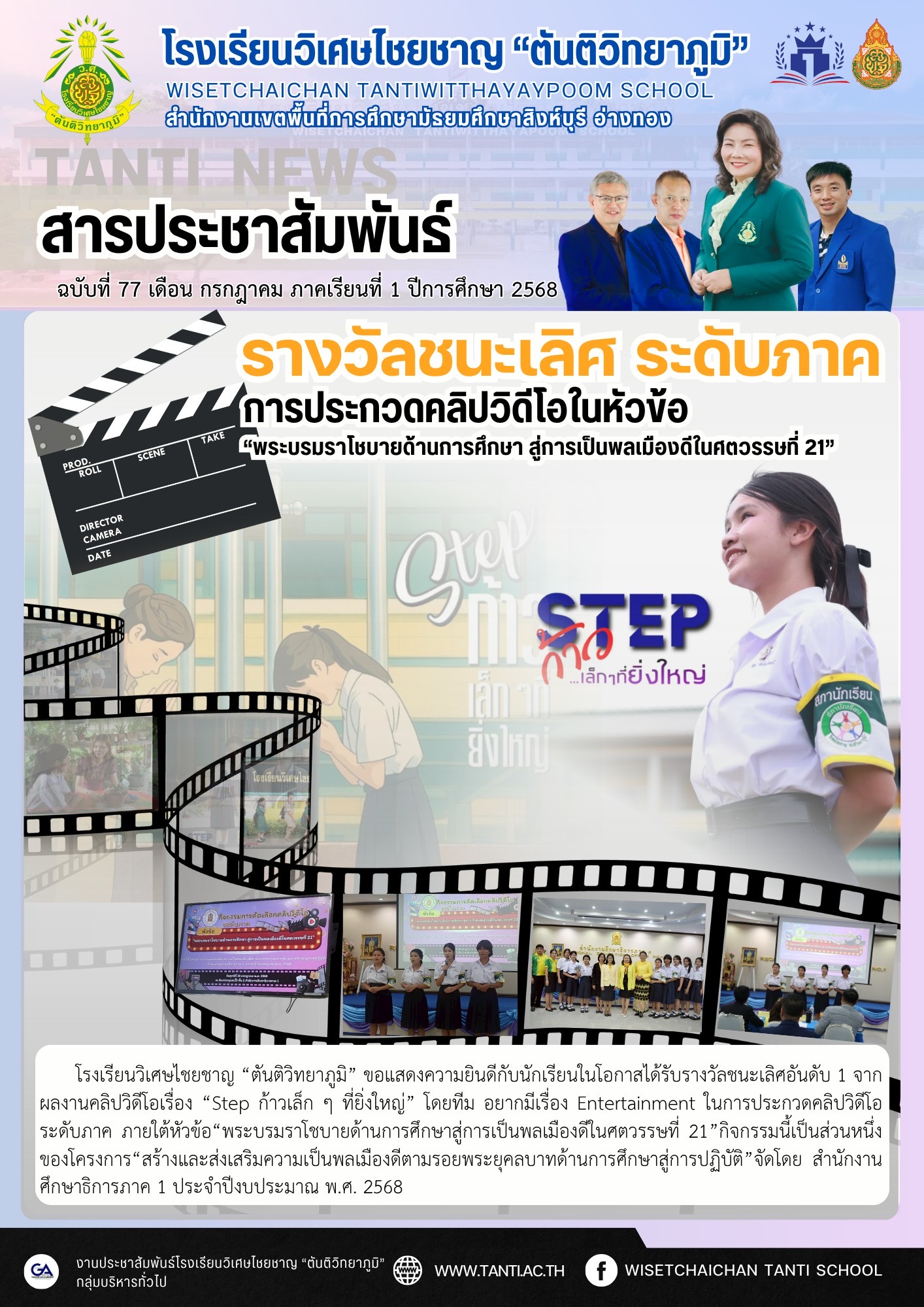 “Step ก้าวเล็ก ๆ ที่ยิ่งใหญ่” โดยทีม อยากมีเรื่อง Entertainment ในการประกวดคลิปวิดีโอระดับภาค ภายใต้หัวข้อ“พระบรมราโชบายด้านการศึกษาสู่การเป็นพลเมืองดีในศตวรรษที่ 21”กิจกรรมนี้เป็นส่วนหนึ่งของโครงการ“สร้างและส่งเสริมความเป็นพลเมืองดีตามรอยพระยุคลบาทด้านการศึกษาสู่การปฏิบัติ”จัดโดย สำนักงานศึกษาธิการภาค 1 ประจำปีงบประมาณ พ.ศ. 2568