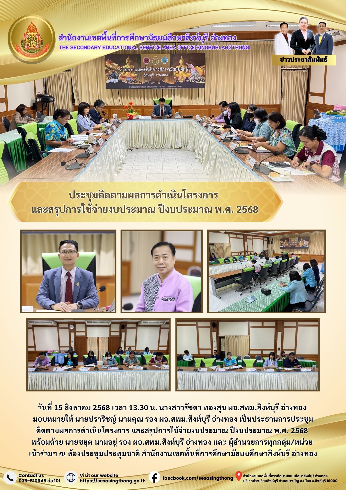 ประชุมติดตามผลการดำเนินโครงการและสรุปการใช้จ่ายงบประมาณ ปีงบประมาณ พ.ศ. 2568