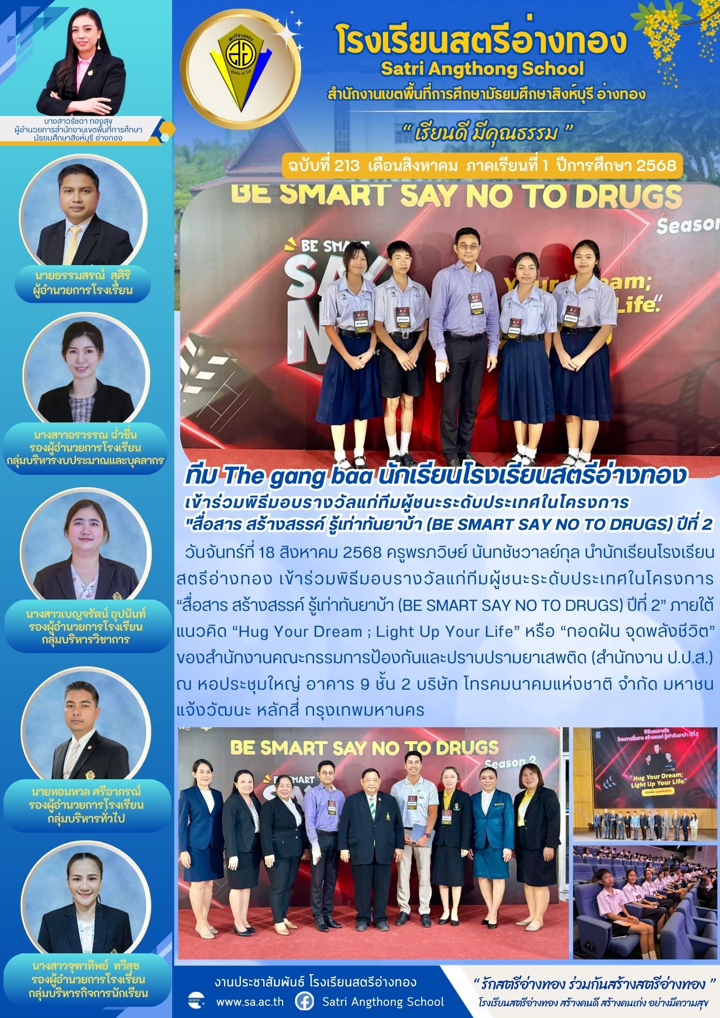 ร่วมพิธีมอบรางวัลแก่ทีมผู้ชนะระดับประเทศในโครงการ “สื่อสาร สร้างสรรค์ รู้เท่าทันยาบ้า (BE SMART SAY NO TO DRUGS) ปีที่ 2