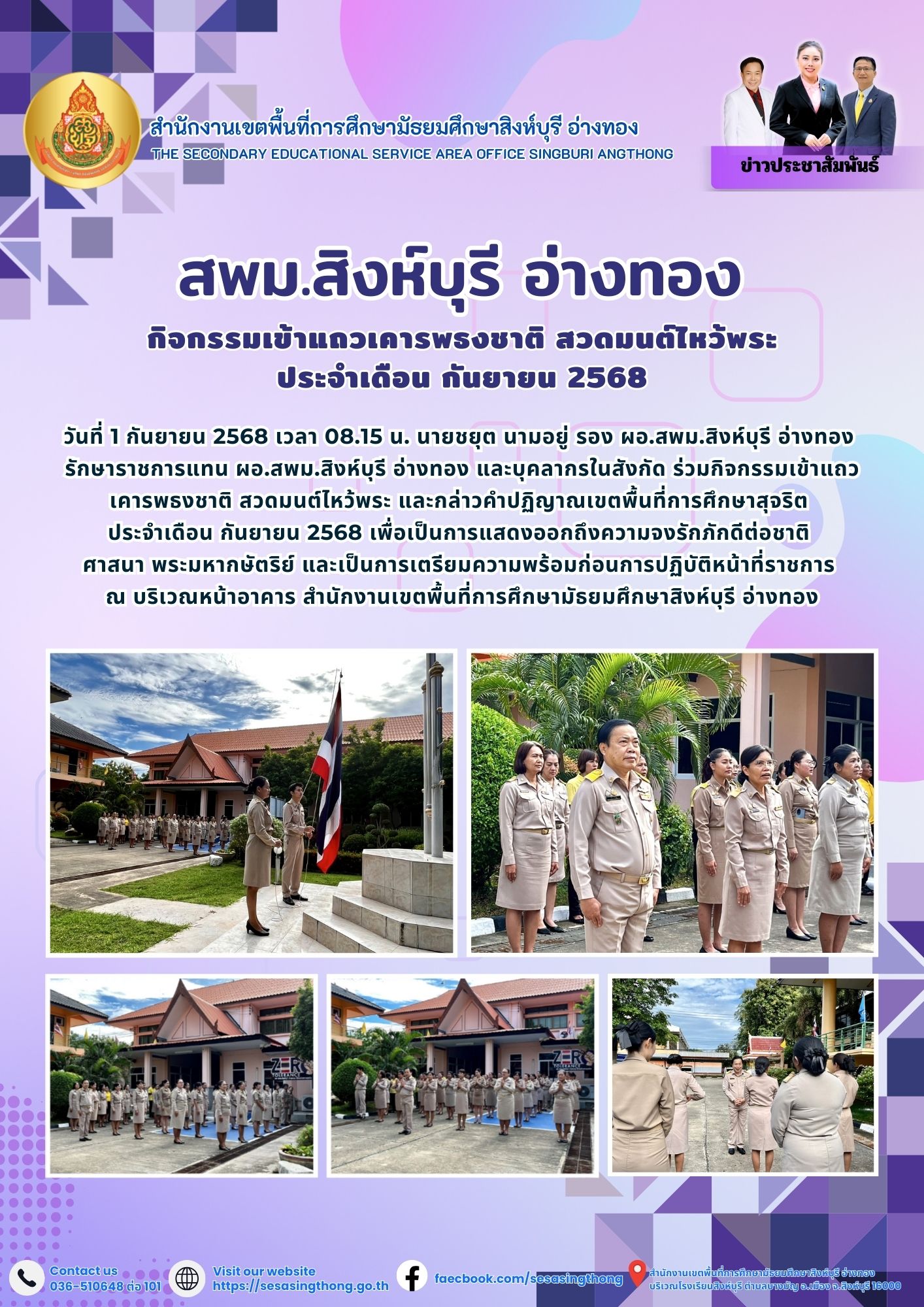กิจกรรมเข้าแถวเคารพธงชาติ สวดมนต์ไหว้พระ ประจำเดือน กันยายน 2568