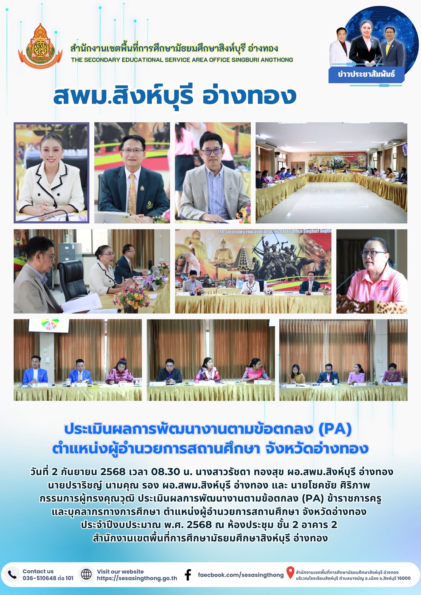 ประเมินผลการพัฒนางานตามข้อตกลง (PA) ตำแหน่งผู้อำนวยการสถานศึกษา จังหวัดอ่างทอง