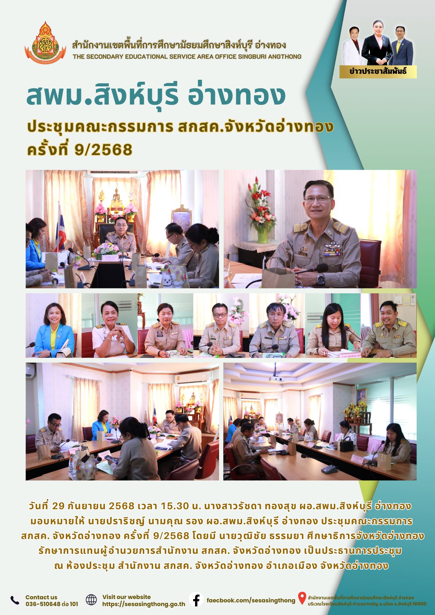 ประชุมคณะกรรมการ สกสค.จังหวัดอ่างทอง ครั้งที่ 9/2568