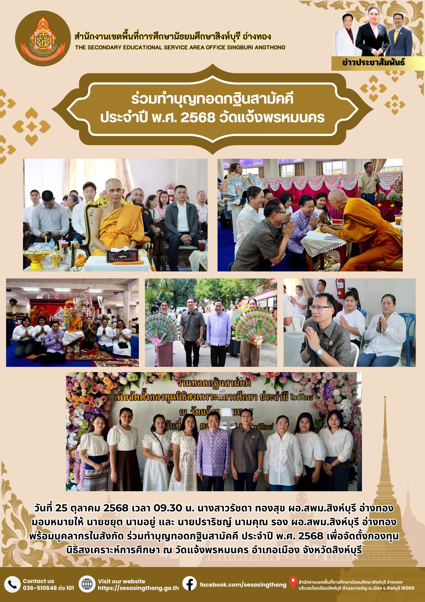 ร่วมทำบุญทอดกฐินสามัคคี ประจำปี พ.ศ. 2568 วัดแจ้งพรหมนคร