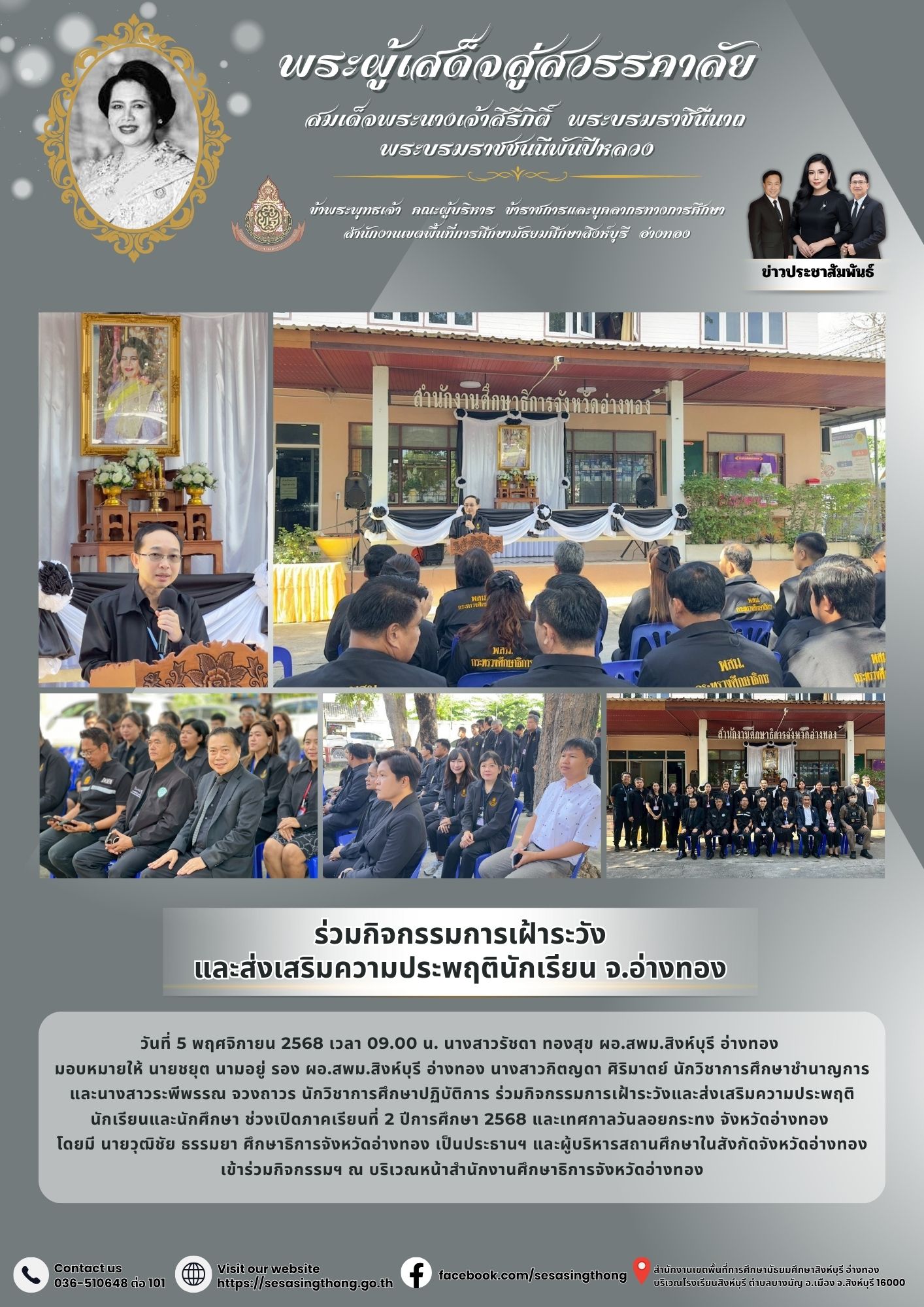 ร่วมกิจกรรมการเฝ้าระวังและส่งเสริมความประพฤตินักเรียน จ.อ่างทอง