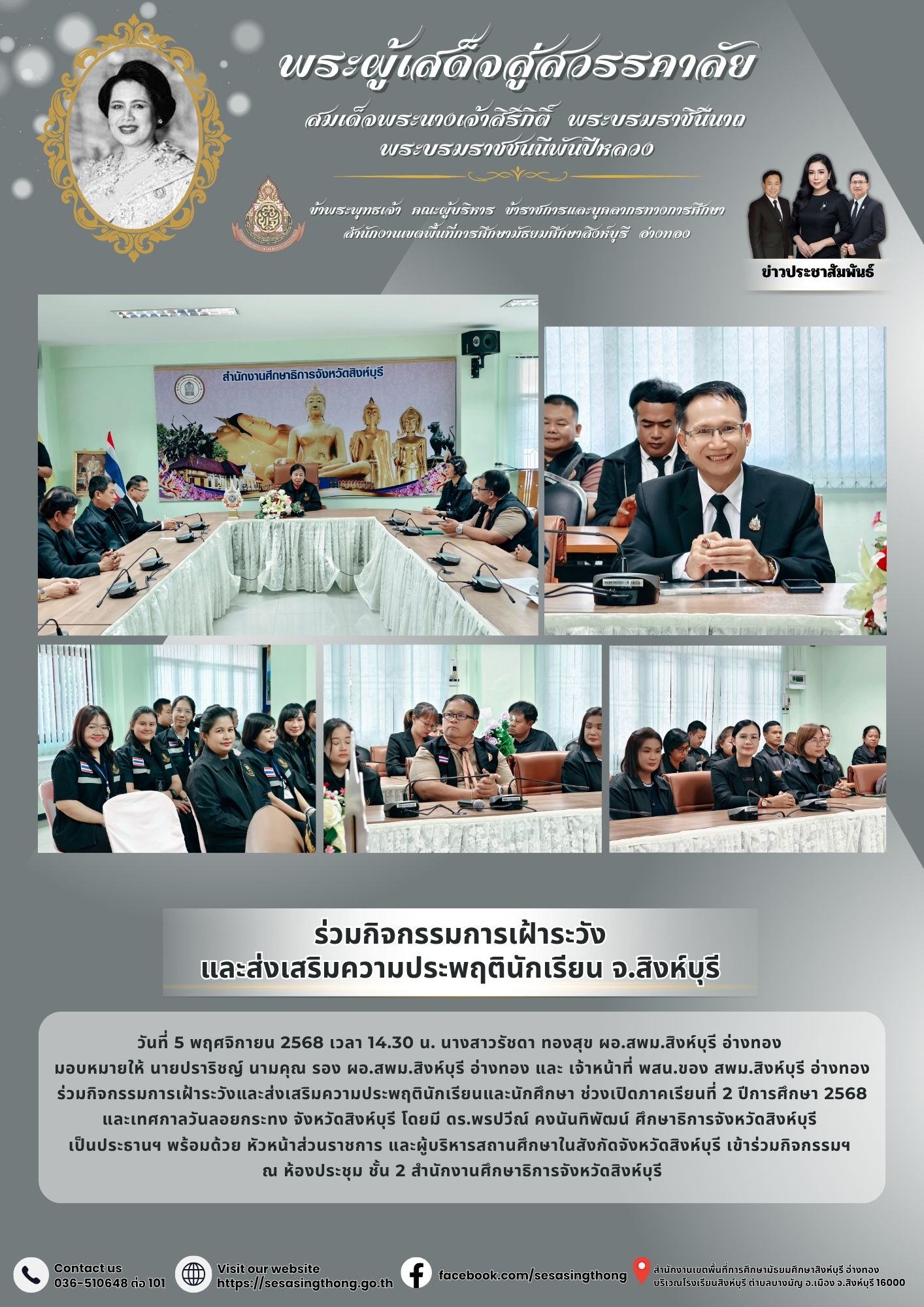 ร่วมกิจกรรมการเฝ้าระวังและส่งเสริมความประพฤตินักเรียน จ.สิงห์บุรี