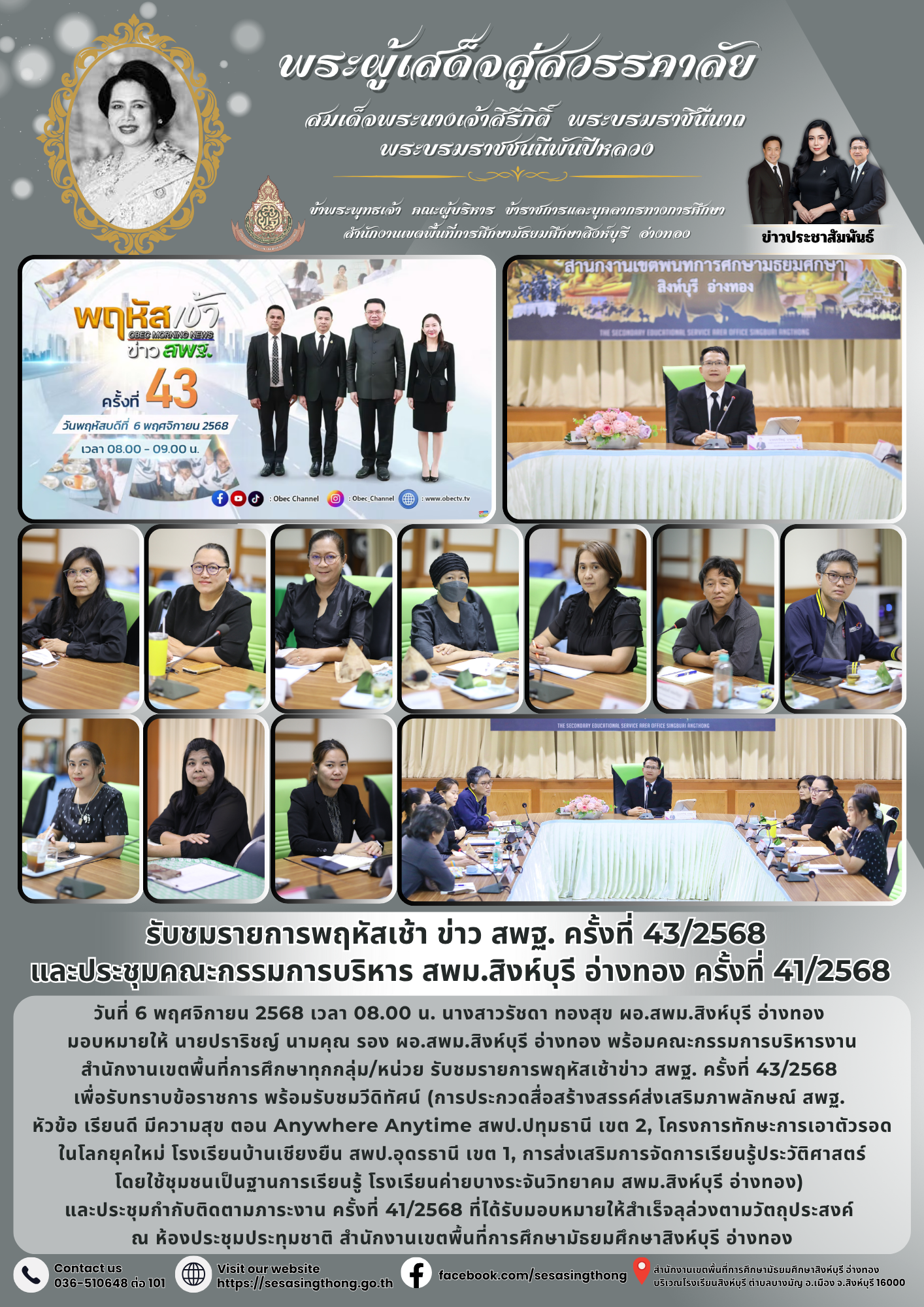 รับชมรายการพฤหัสเช้าข่าว สพฐ. ครั้งที่ 43/2568