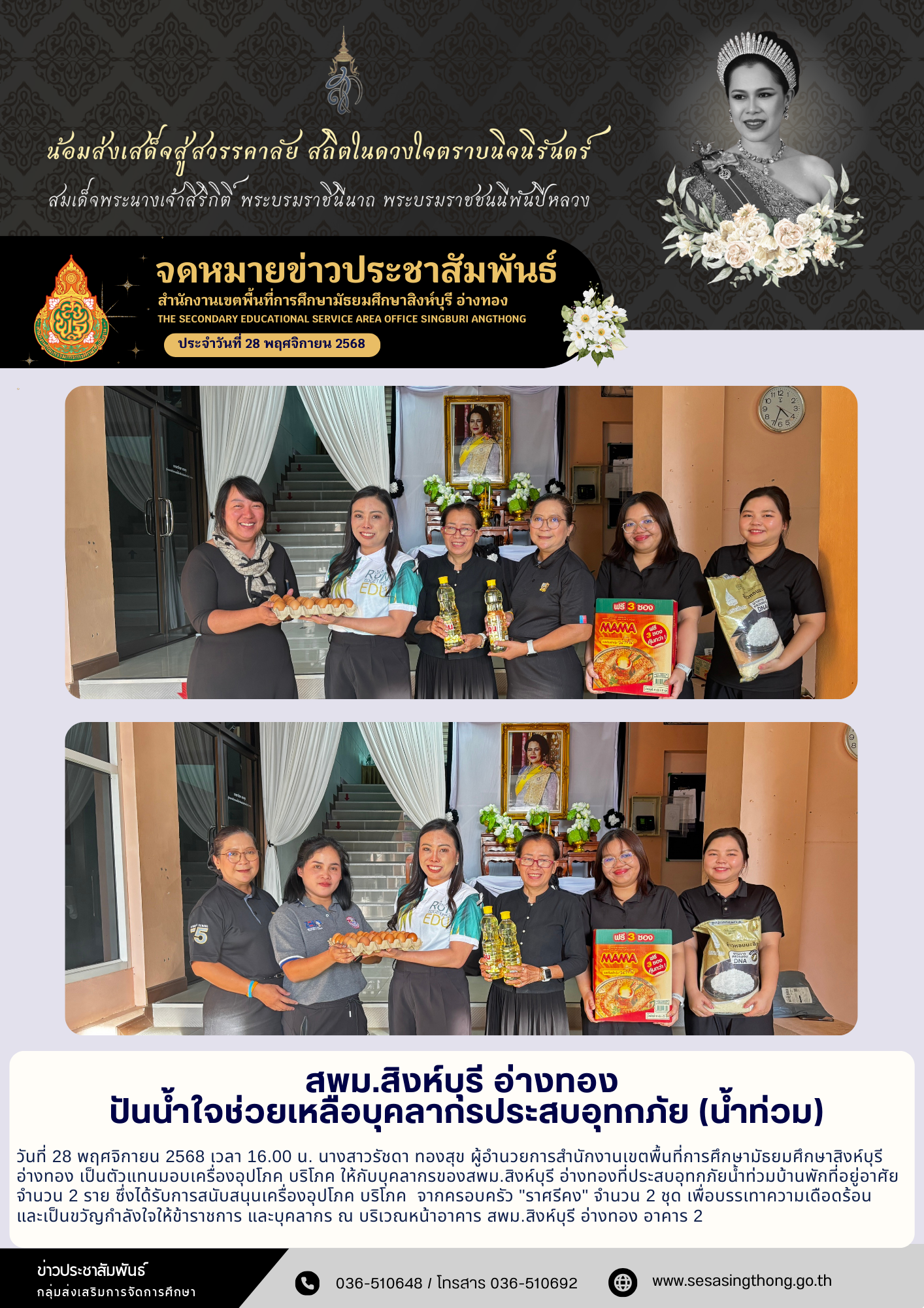 สพม.สิงห์บุรี อ่างทอง ปันน้ำใจช่วยเหลือบุคลากรประสบภัย (น้ำท่วม)