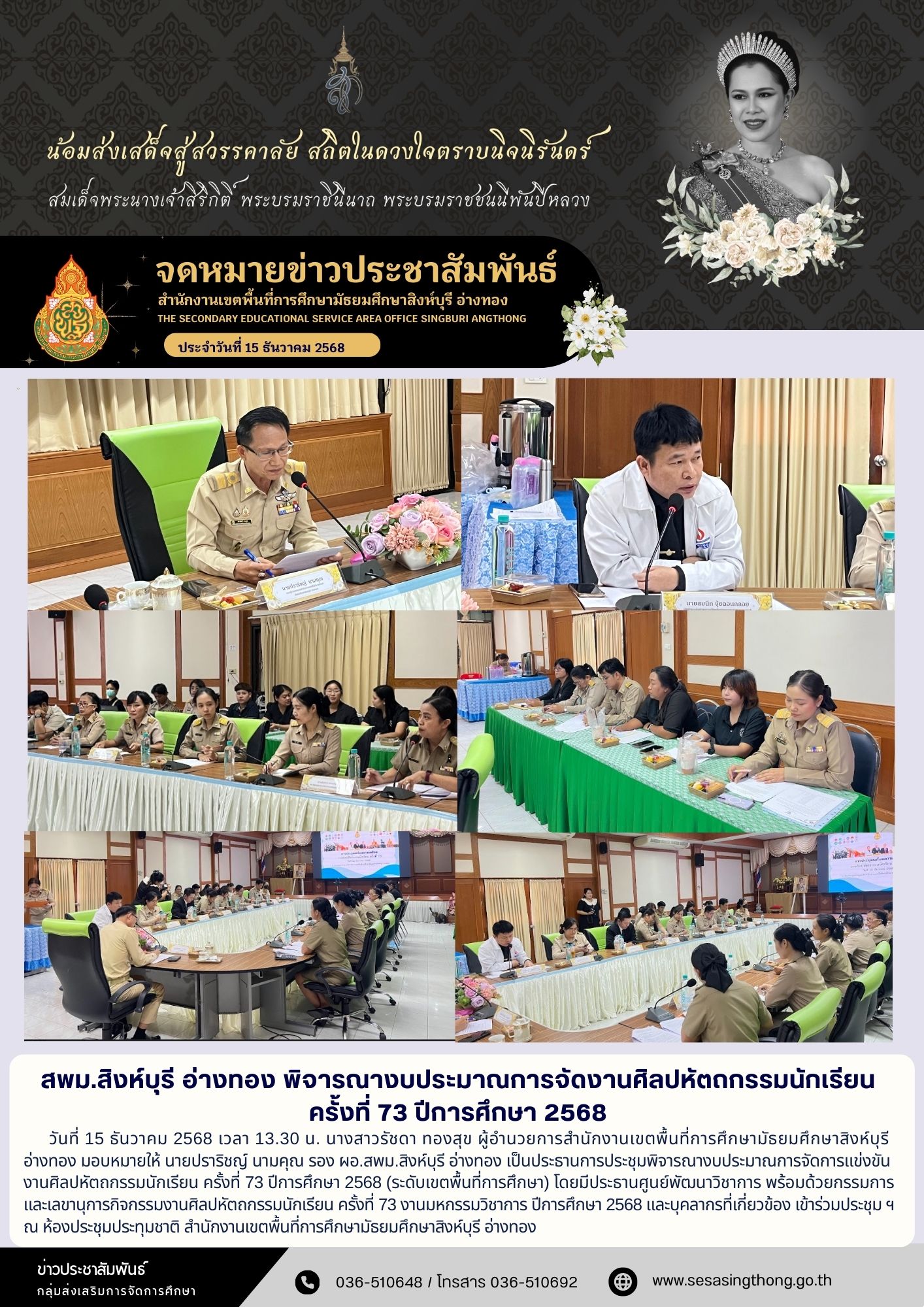 ประชุมพิจารณางบประมาณการจัดงานศิลปหัตถกรรมนักเรียน ครั้งที่ 73 ปีการศึกษา 2568