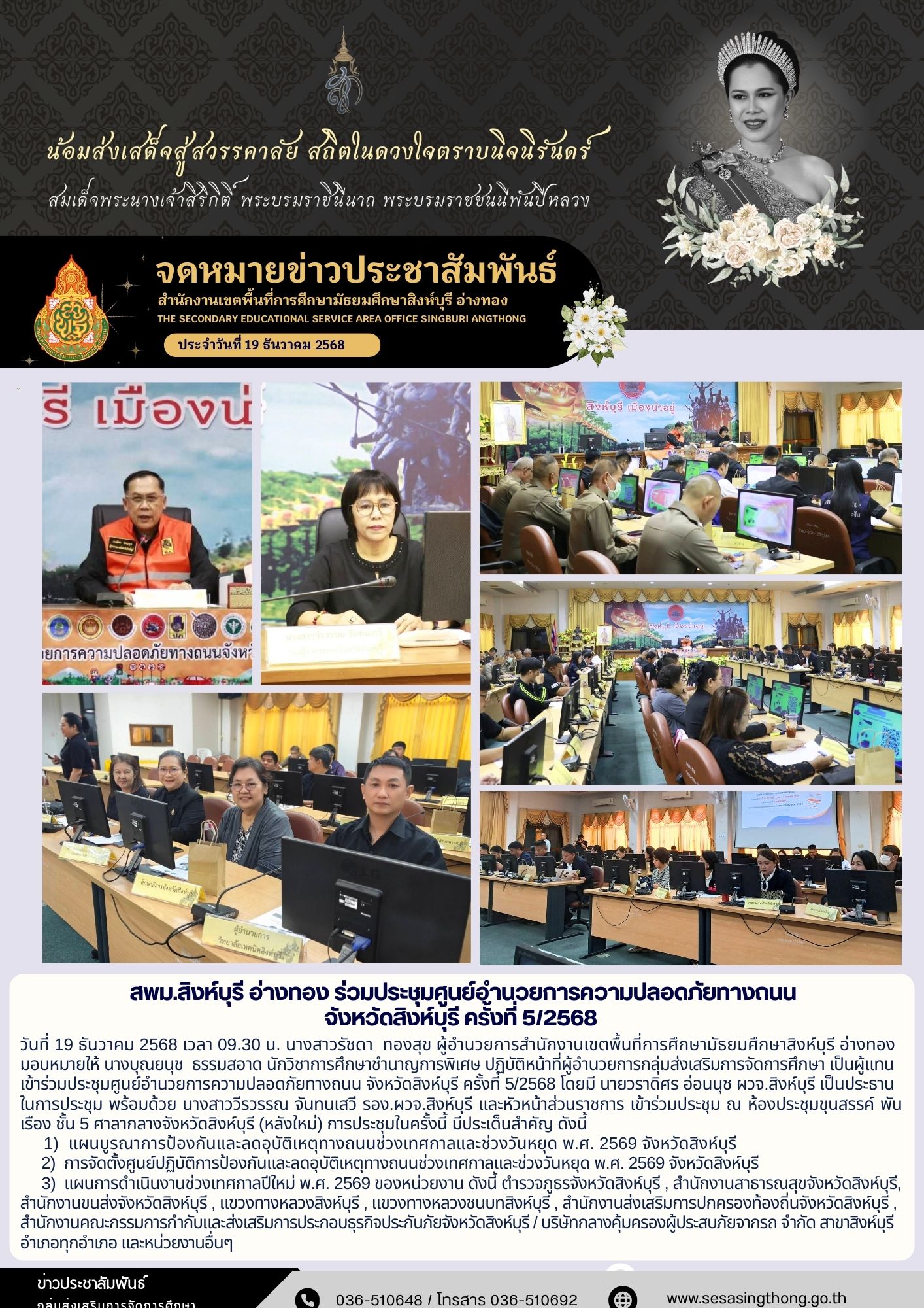 ร่วมประชุมศูนย์อำนวยการความปลอดภัยทางถนน จังหวัดสิงห์บุรี ครั้งที่ 5/2568