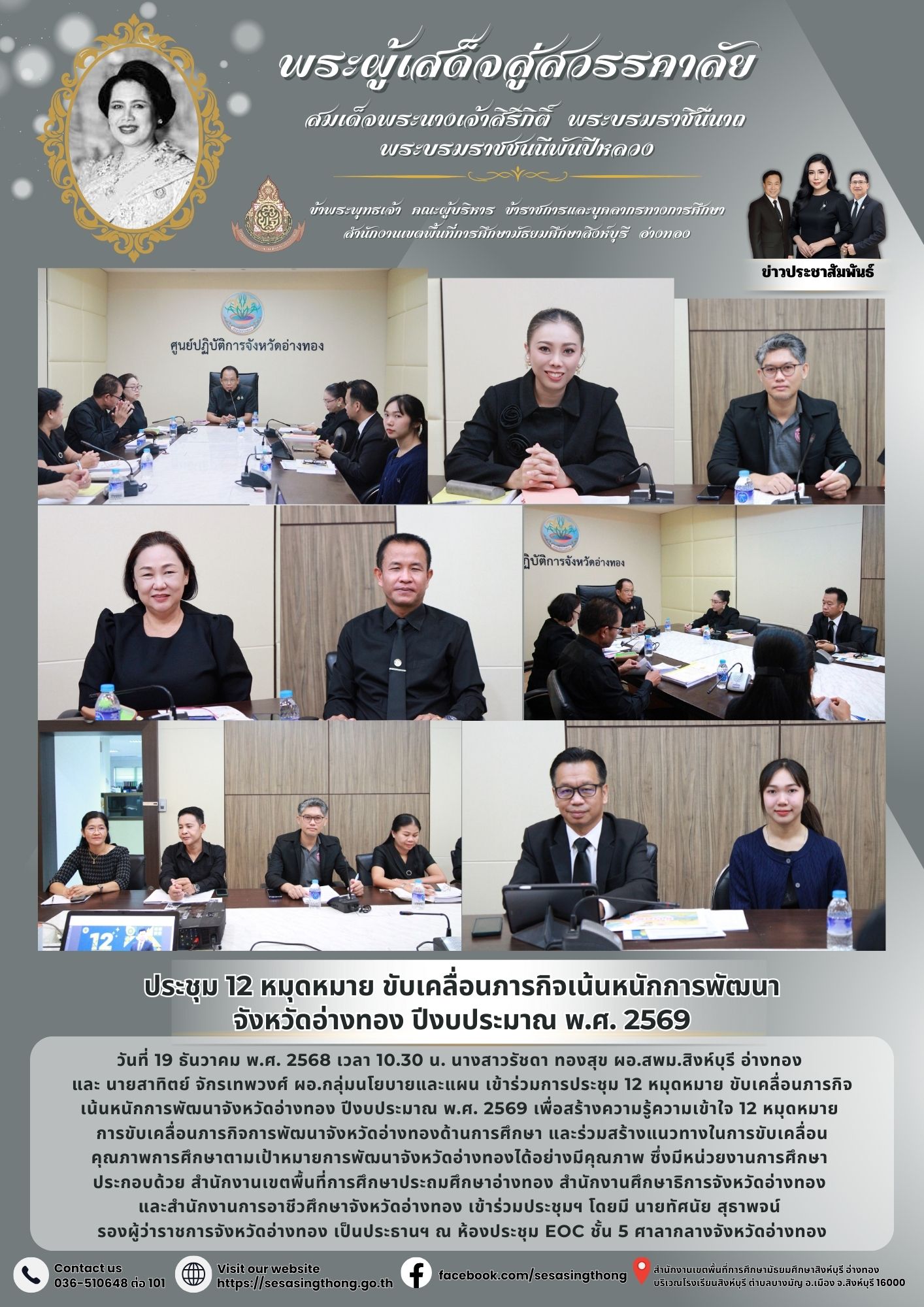 ประชุม 12 หมุดหมาย ขับเคลื่อนภารกิจเน้นหนักการพัฒนาจังหวัดอ่างทอง ปีงบประมาณ พ.ศ. 2569
