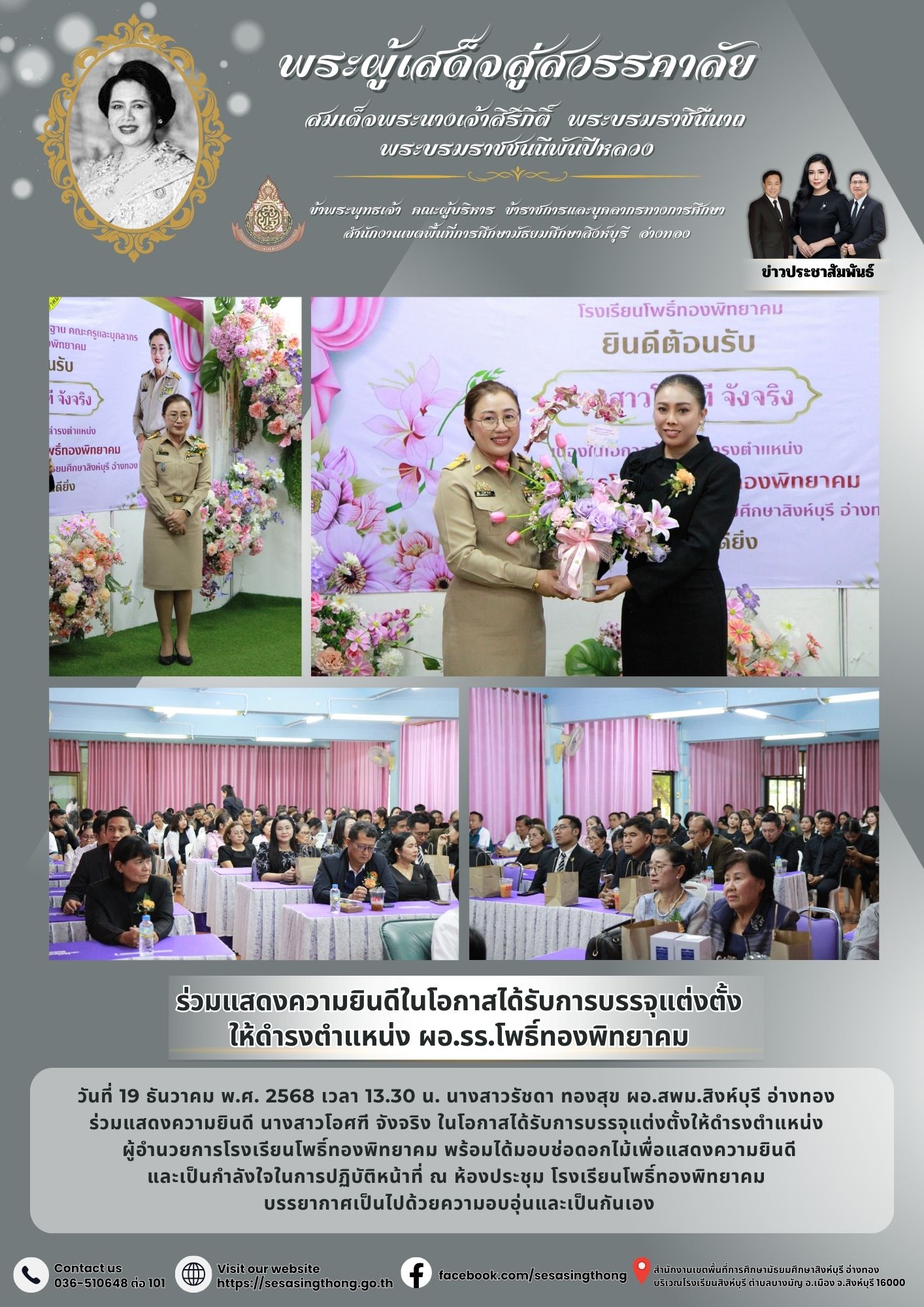 ร่วมแสดงความยินดีในโอกาสได้รับการบรรจุแต่งตั้งให้ดำรงตำแหน่ง ผอ.รร.โพธิ์ทองพิทยาคม