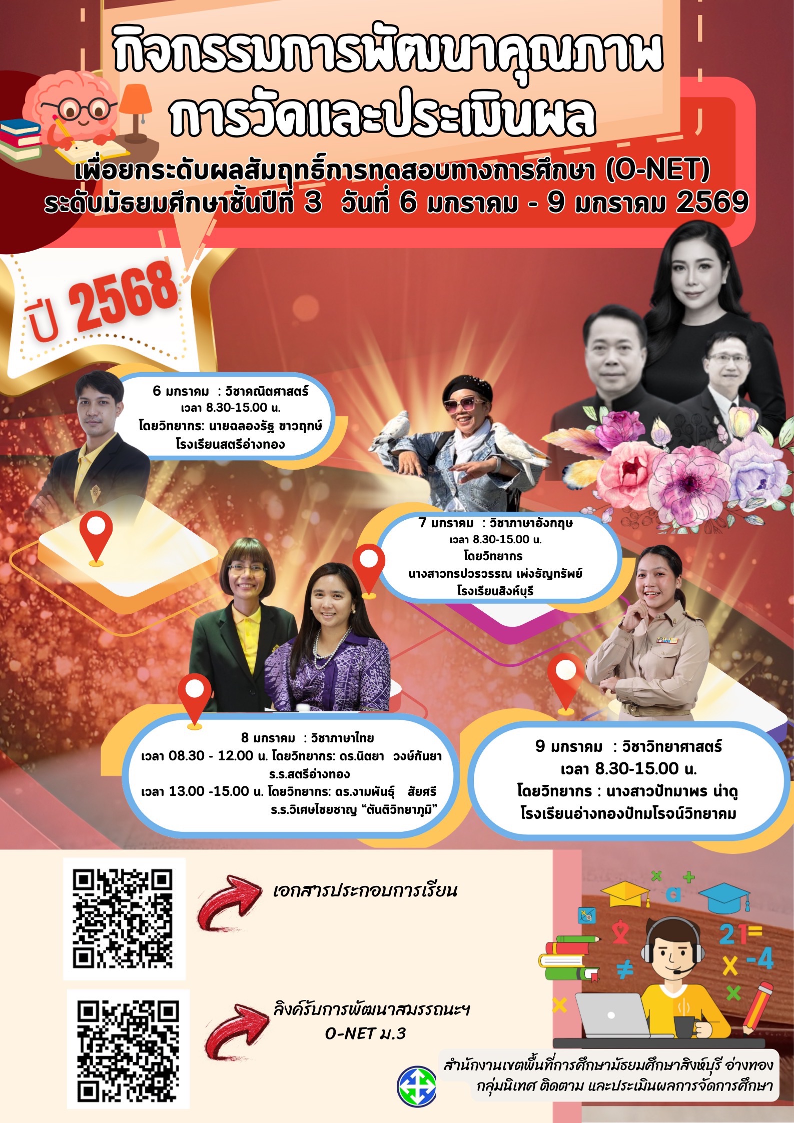 กิจกรรมการพัฒนาคุณภาพการวัดและประเมินผล เพื่อยกระดับผลสัมฤทธิ์การทดสอบทางการศึกษา (O-NET) ระดับมัธยมศึกษาชั้นปีที่ 3 วันที่ 6 มกราคม – 9 มกราคม 2569