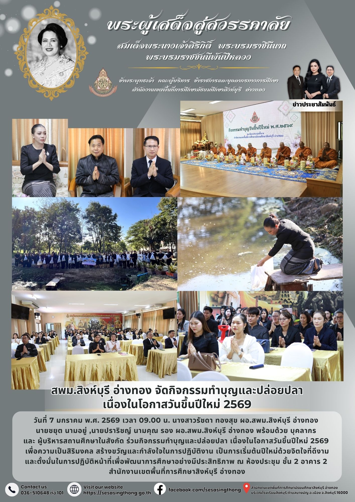 สพม.สิงห์บุรี อ่างทอง จัดกิจกรรมทำบุญและปล่อยปลา เนื่องในโอกาสวันขึ้นปีใหม่ 2569