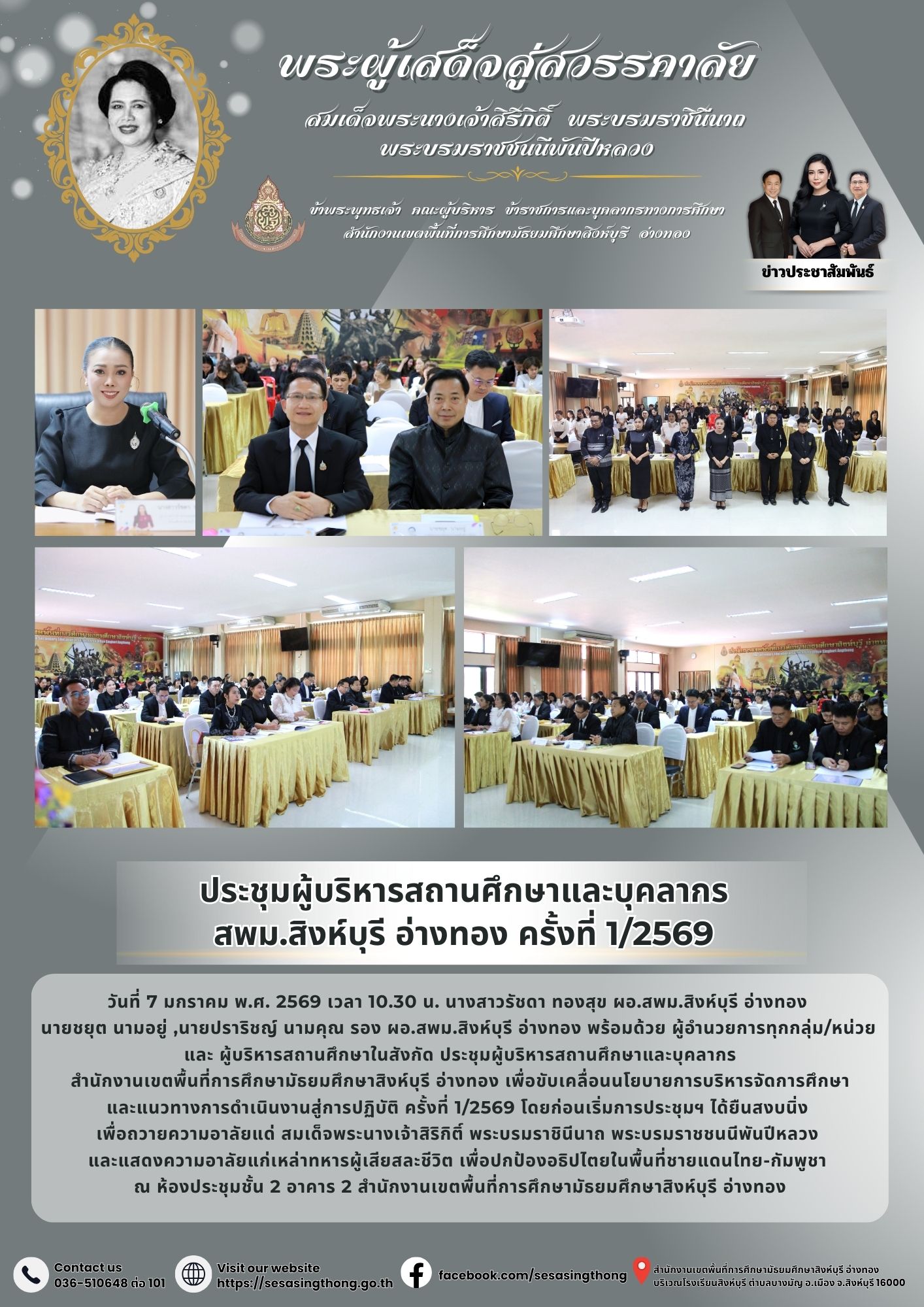 ประชุมผู้บริหารสถานศึกษาและบุคลากร สพม.สิงห์บุรี อ่างทอง ครั้งที่ 1/2569