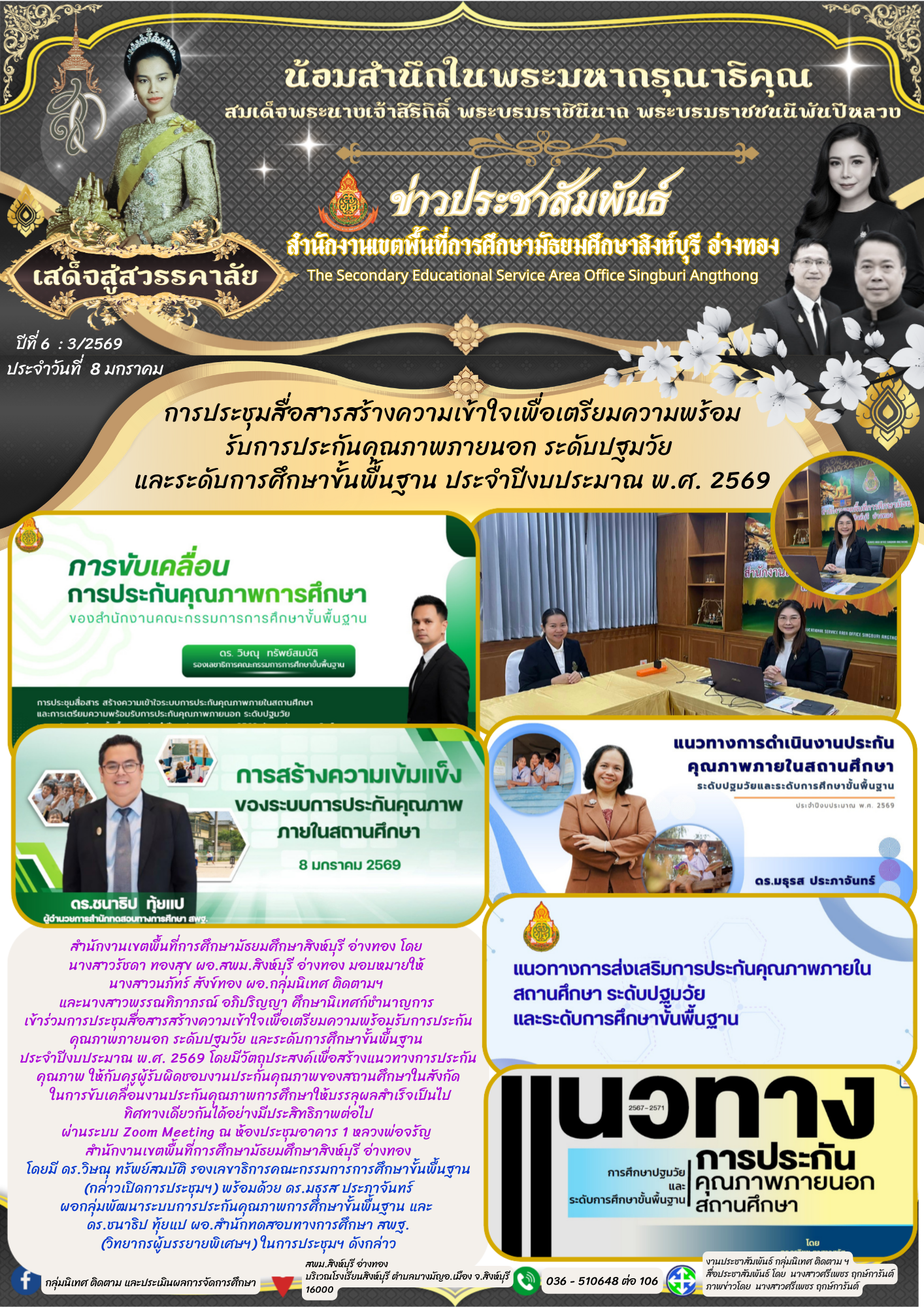 วันที่ 8 มกราคม 2569 การประชุมสื่อสารสร้างความเข้าใจเพื่อเตรียมความพร้อมรับการประกันคุณภาพภายนอก ระดับปฐมวัย และระดับการศึกษาขั้นพื้นฐาน ประจำปีงบประมาณ พ.ศ. 2569