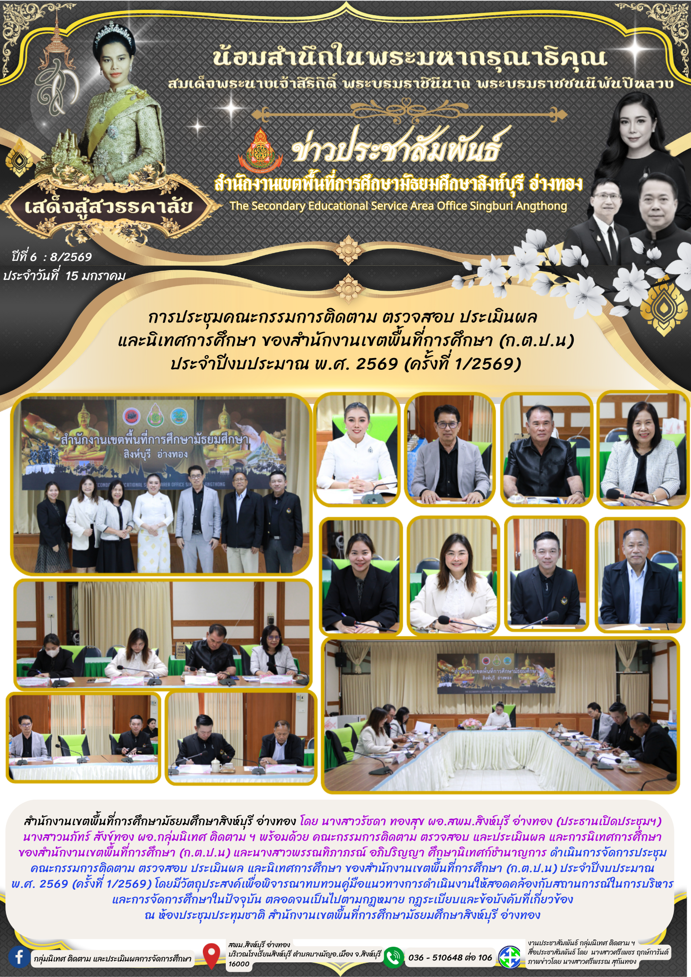 วันที่ 15 มกราคม 2569 – การประชุมคณะกรรมการติดตาม ตรวจสอบ ประเมินผล และนิเทศการศึกษา ของสำนักงานเขตพื้นที่การศึกษา (ก.ต.ป.น) ประจำปีงบประมาณ พ.ศ. 2569 (ครั้งที่ 1/2569)