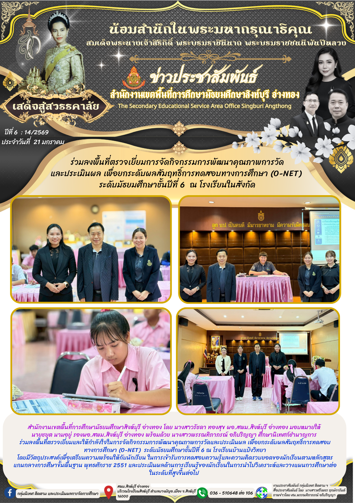 ร่วมลงพื้นที่ตรวจเยี่ยมการจัดกิจกรรมการพัฒนาคุณภาพ การวัดและประเมินผล เพื่อยกระดับผลสัมฤทธิ์การทดสอบทางการศึกษา (O-NET) ระดับมัธยมศึกษาชั้นปีที่ 6 ณ โรงเรียนบ้านแป้งวิทยา