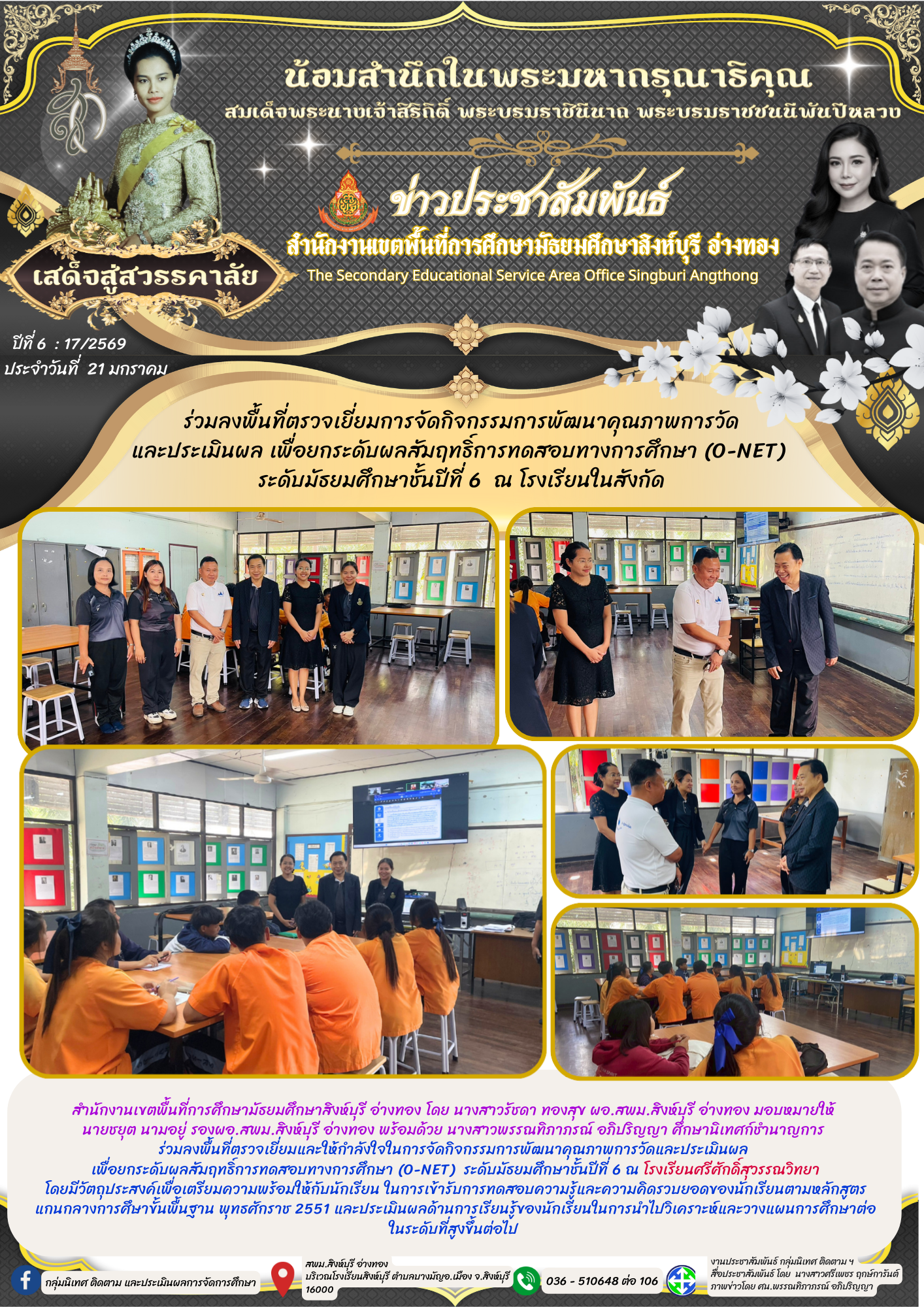 ร่วมลงพื้นที่ตรวจเยี่ยมการจัดกิจกรรมการพัฒนาคุณภาพ การวัดและประเมินผล เพื่อยกระดับผลสัมฤทธิ์การทดสอบทางการศึกษา (O-NET) ระดับมัธยมศึกษาชั้นปีที่ 6 ณ โรงเรียนศรีศักดิ์สุวรรณวิทยา