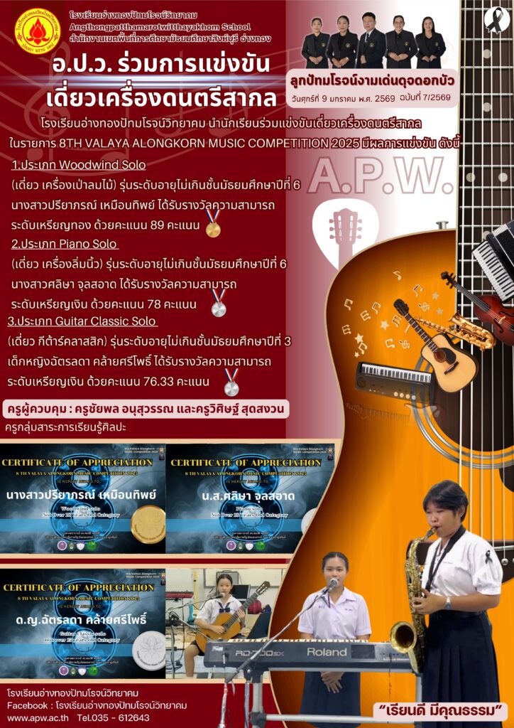 โรงเรียนอ่างทองปัทมโรจน์วิทยาคม นำนักเรียนร่วมแข่งขันเดี่ยวเครื่องดนตรีสากล