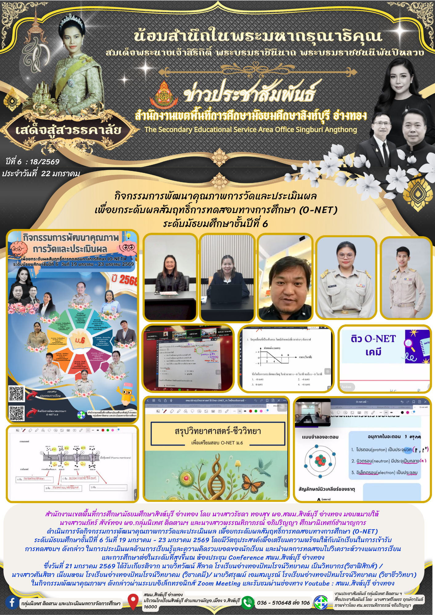 วันที่ 22 มกราคม 2569 กิจกรรมการพัฒนาคุณภาพการวัดและประเมินผล เพื่อยกระดับผลสัมฤทธิ์การทดสอบทางการศึกษา (O-NET) ระดับมัธยมศึกษาชั้นปีที่ 6 (วิชาฟิสิกส์))
