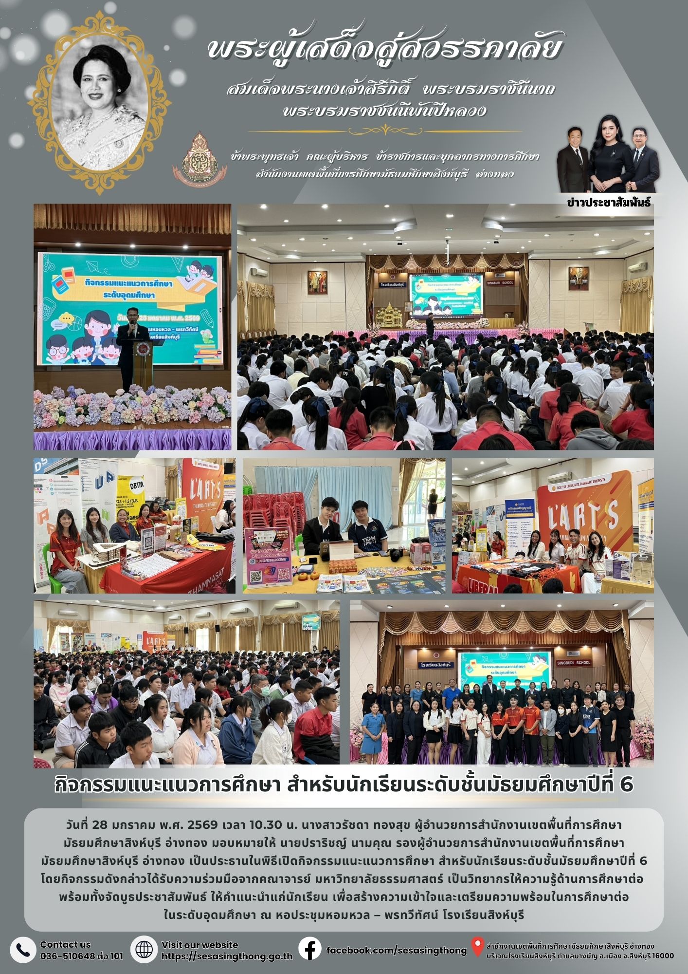 กิจกรรมแนะแนวการศึกษา สำหรับนักเรียนระดับชั้นมัธยมศึกษาปีที่ 6