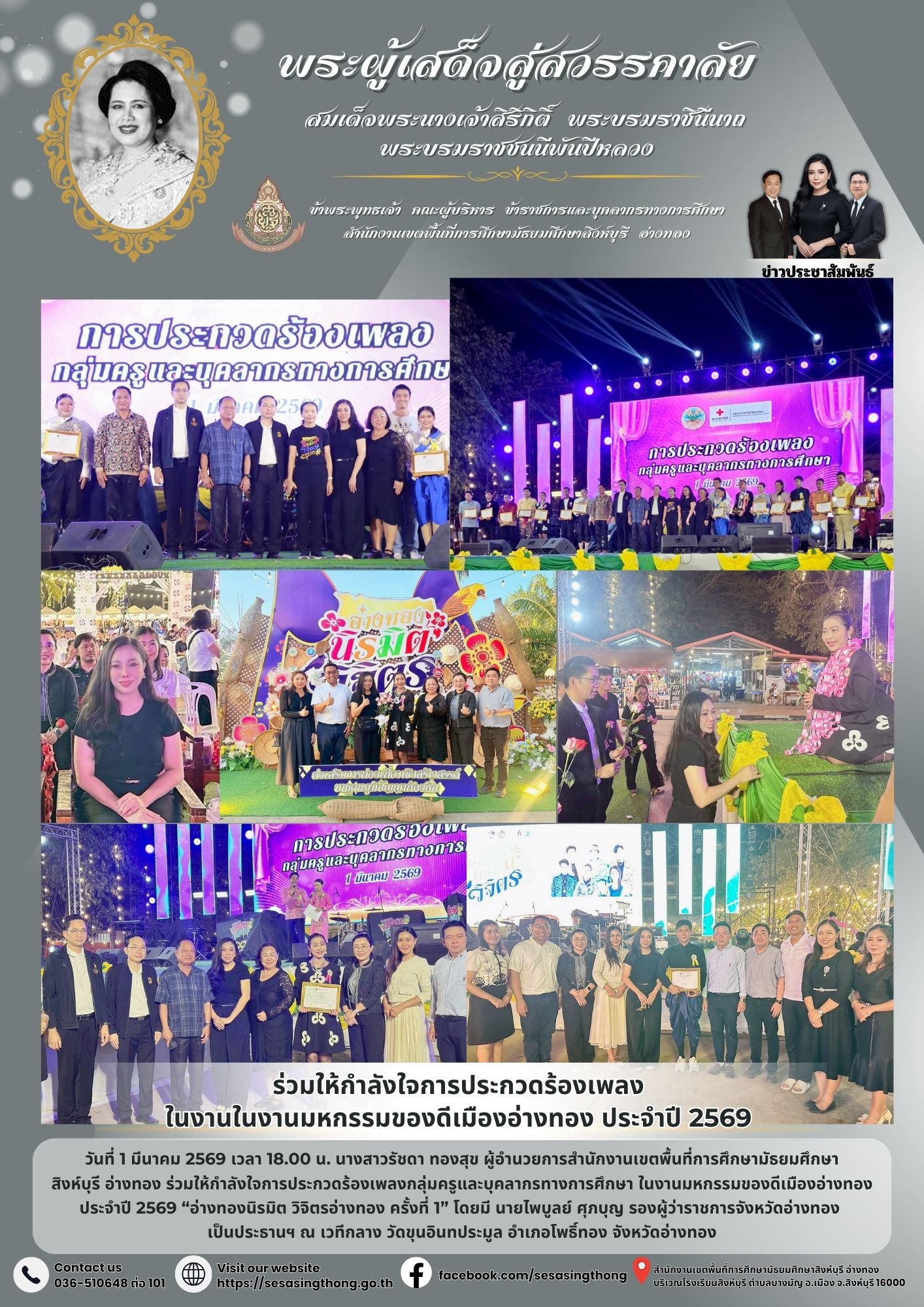 ร่วมให้กำลังใจการประกวดร้องเพลง ในงานในงานมหกรรมของดีเมืองอ่างทอง ประจำปี 2569