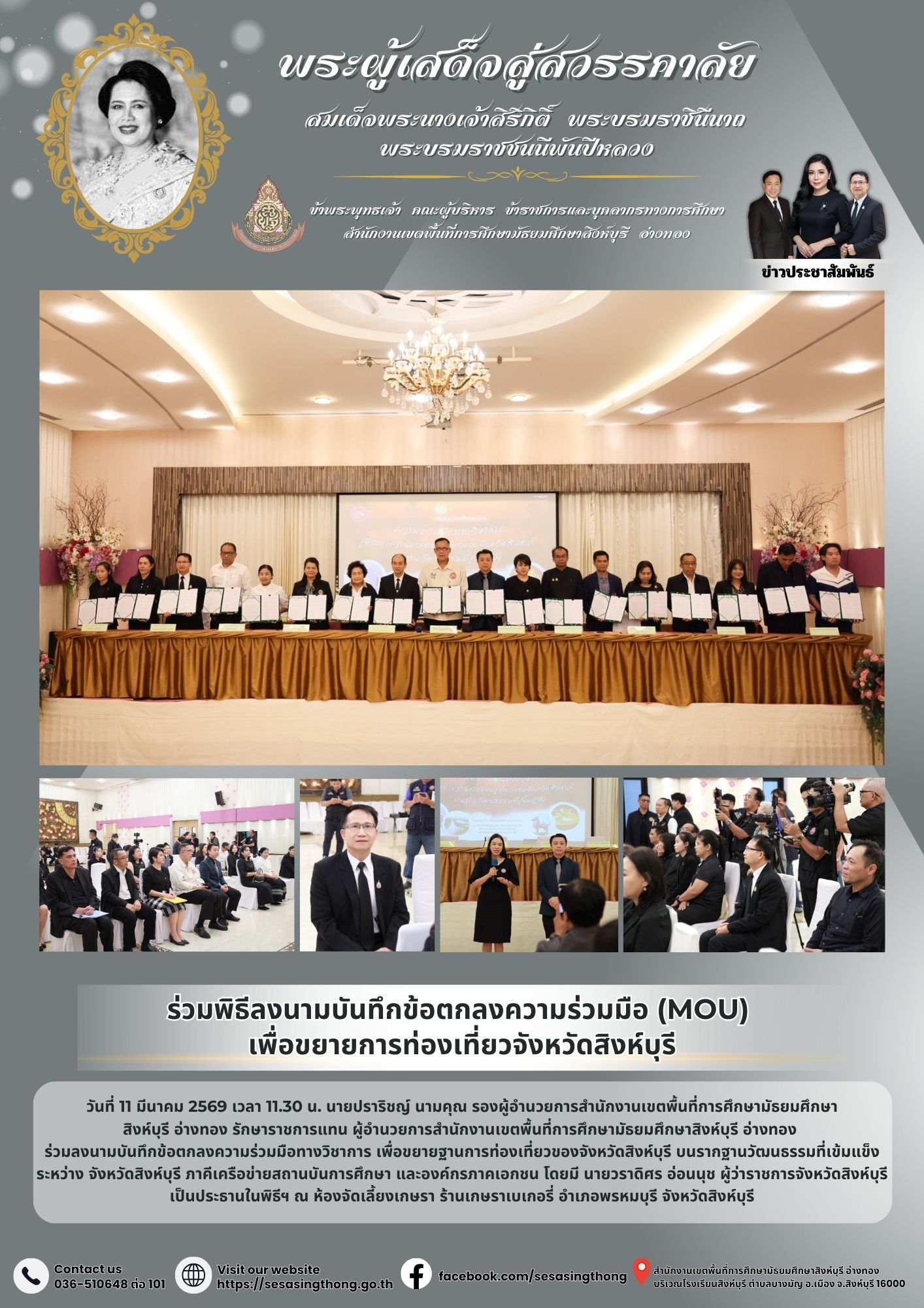 ร่วมพิธีลงนามบันทึกข้อตกลงความร่วมมือ (MOU) เพื่อขยายการท่องเที่ยวจังหวัดสิงห์บุรี