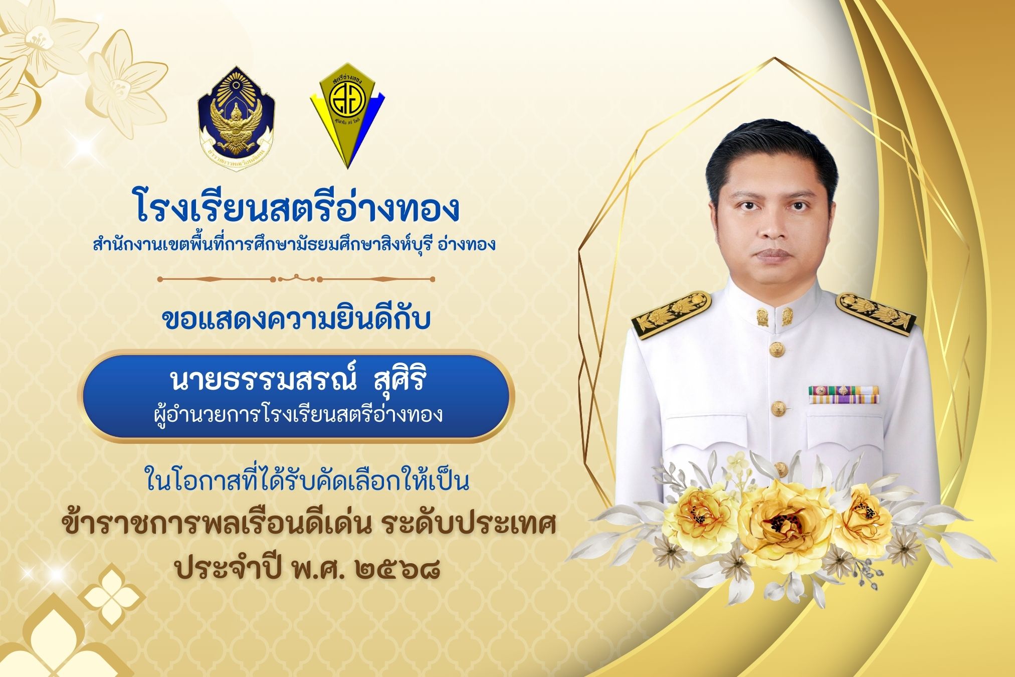 ขอแสดงความยินดีกับ ผู้อำนวยการโรงเรียนสตรีอ่างทอง
