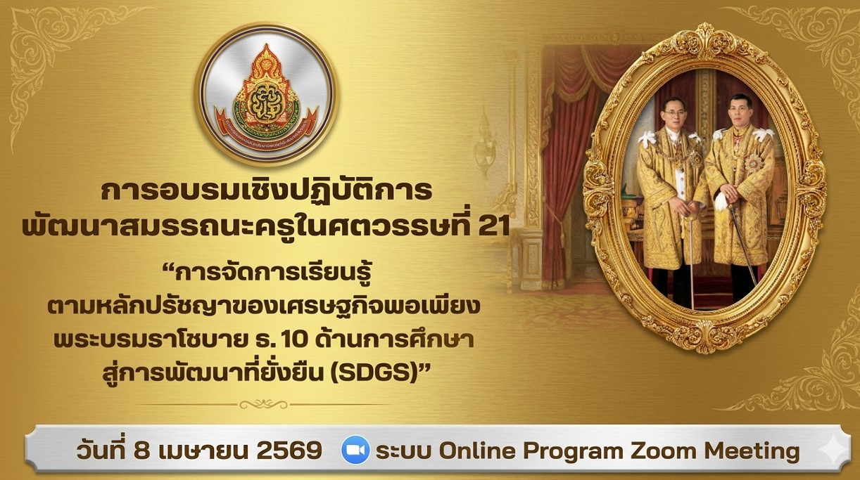 การอบรมเชิงปฏิบัติการพัฒนาสมรรถนะครูในศตวรรษที่ 21 การจัดการเรียนรู้ตามหลักปรัชญาของเศรษฐกิจพอเพียง พระบรมราโชบาย ร.10 ด้านการศึกษาสู่การพัฒนาที่ยั่งยืน SDGS